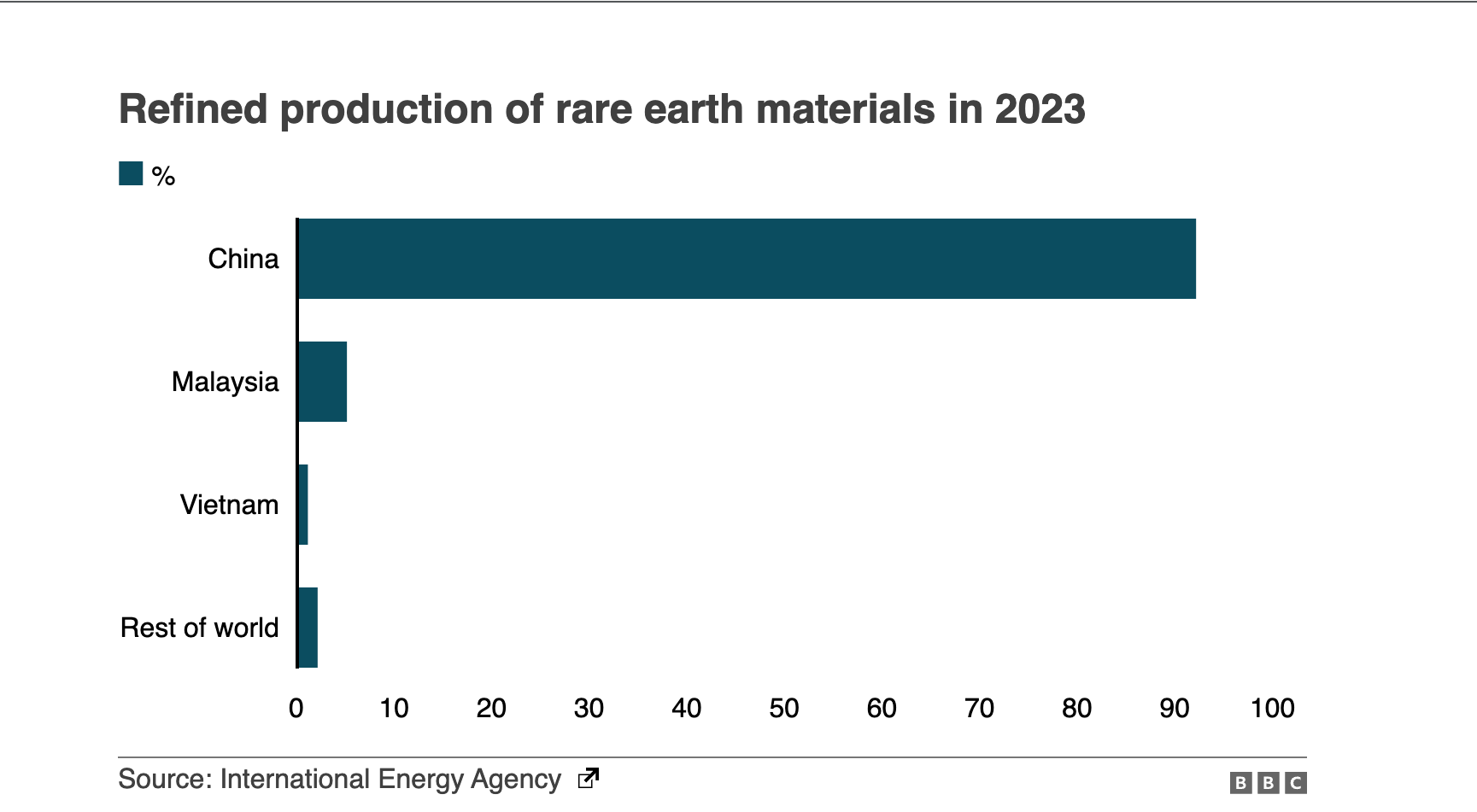 China plays the long game (50-100yrs). They take advantage of weak, corrupt leaders all around the world and "invest" billions for infrastructure, ports, coal, oil and minerals. They refine them in these countries as far as the infrastructure and skills will allow. And then refine every metal in their country with no regulations and no concern for safety or human rights (ie.no unions, congress or legal system.) They make maximum use of internal "slave" labor, Uyghurs, Turks and Falun Gong.